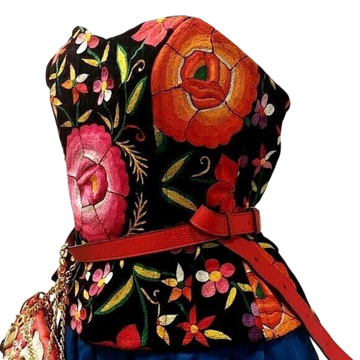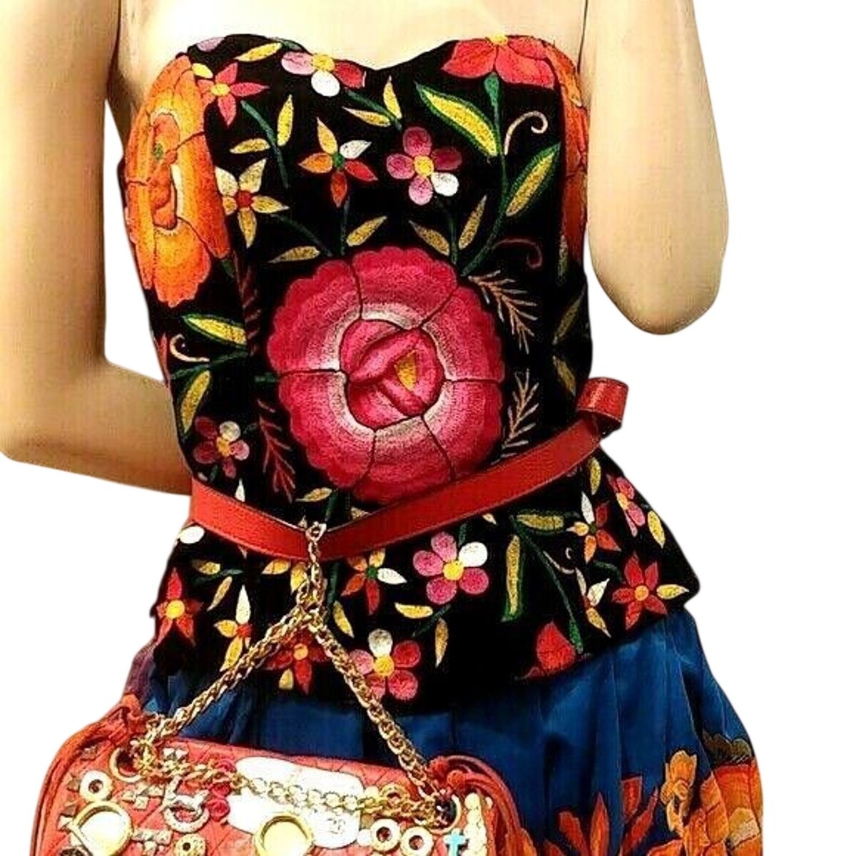 What you?ll love about this embroidered velvet corset is the bold, colorful floral embroidery against rich black velvet, creating a dramatic, festival-ready statement piece with a flattering structured silhouette.