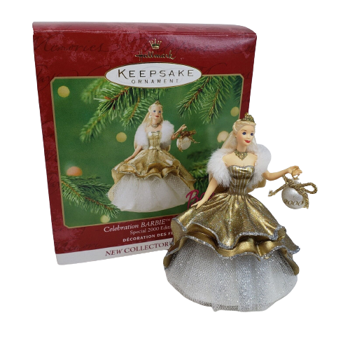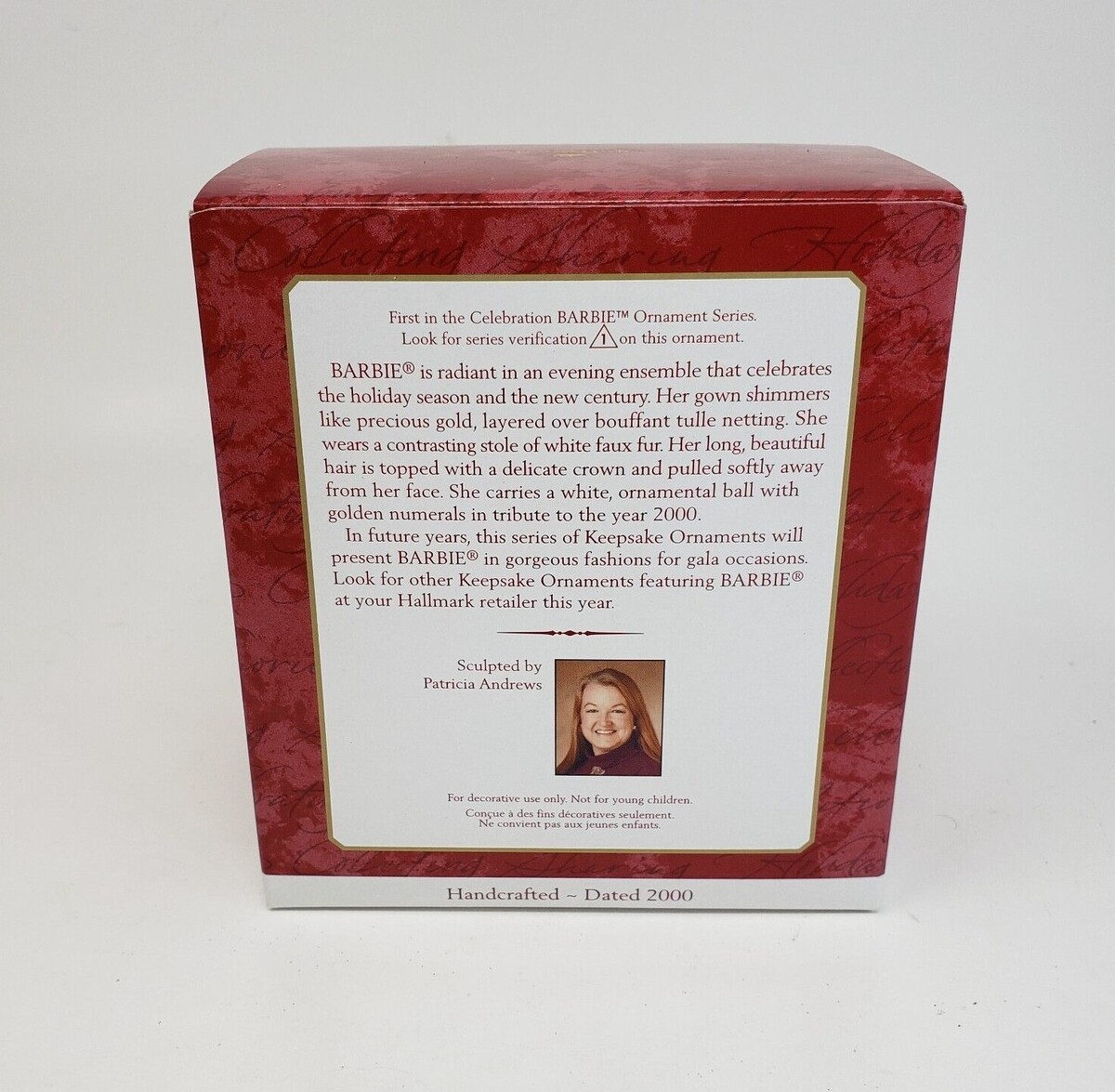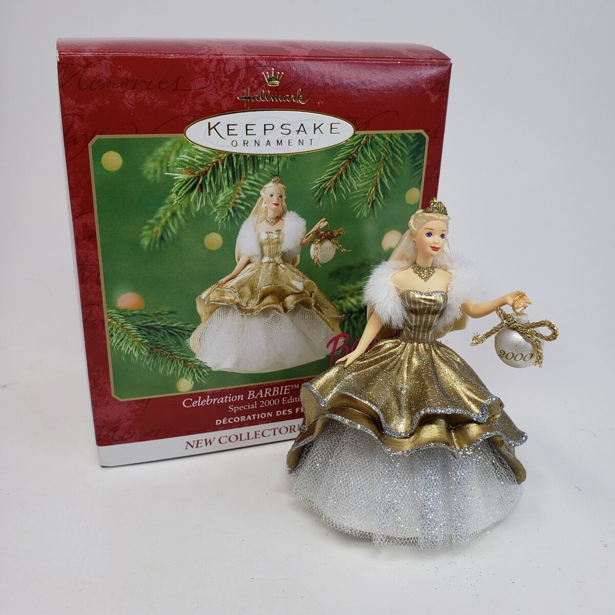 2000 HALLMARK MATTEL CELEBRATION BARBIE DOLL KEEPSAKE CHRISTMAS ORNAMENT GOLD