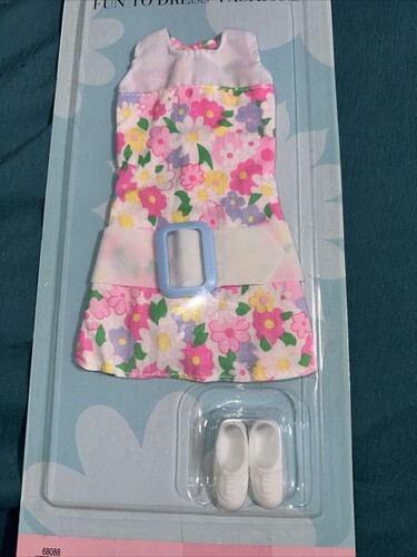 This vintage Barbie Fun To Dress Fashions set is a must-have for any Barbie collector. The set includes a beautiful white dress with flowers, a belt, and shoes, all made of high-quality cloth material. The dress is perfect for any occasion, whether it's everyday wear, casual outings, or seasonal events.