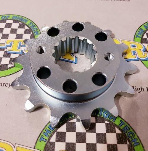 This is Not gear-hobbed like other sprockets insuring the teeth fit precisely on the chain rollers insuring maximum chain/sprocket life along with a more efficient power transmission. It is lightened with drilled holes to save on rotating mass. Every lb of rotating mass equates to a 4 lb weight reduction. It is case hardened to Rc 58-60 and finished with a silver zinc plating for added durability/protection from corrosion.