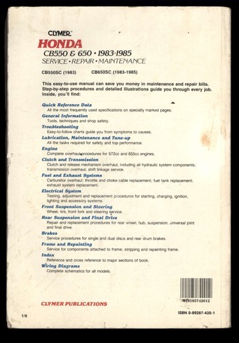 HONDA CB 550 650 1983-1985 Service Repair Manual CLYMER 1996 Softcover M345