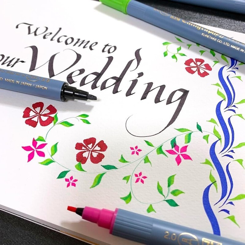 ZIG Calligraphy Marker Pens, 12 Colors Set, 2Mm & 3.5Mm Dual Tip Markers