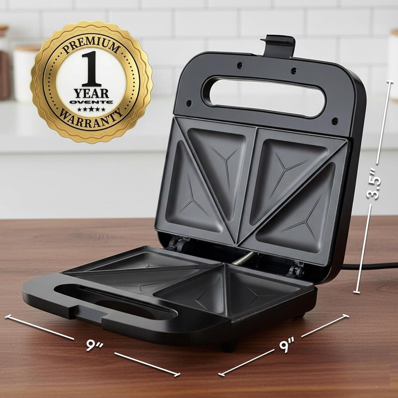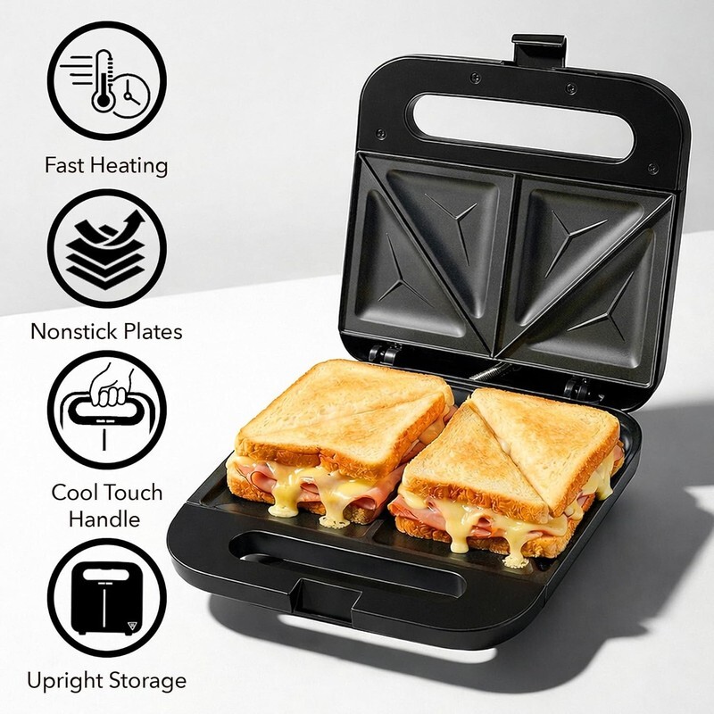 Electric Sandwich Maker with Non-Stick Plates, Indicator Lights, Cool Touch Hand