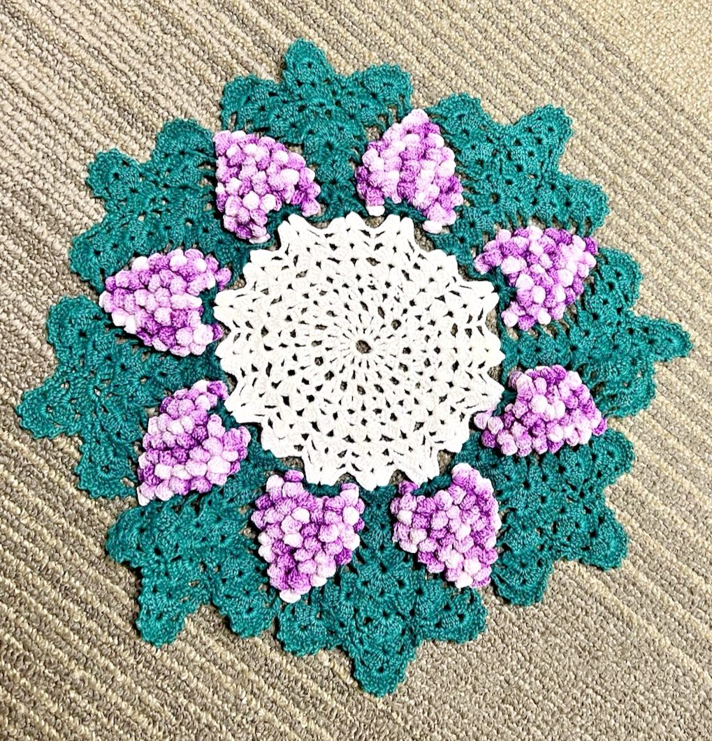2 Handmade Grandma Core Crochet Grape Doilies 1 Rnd 11.5" 1 Sq 16" Great Shape