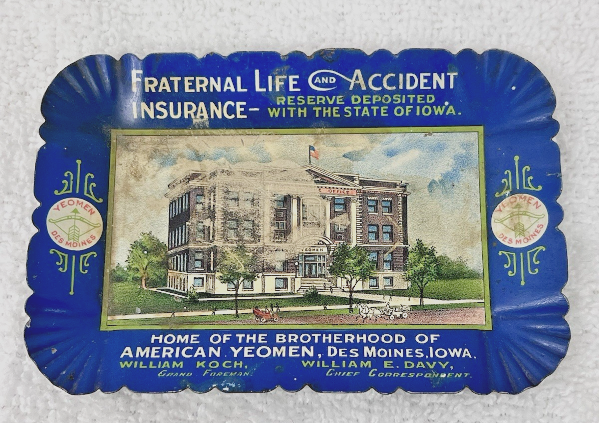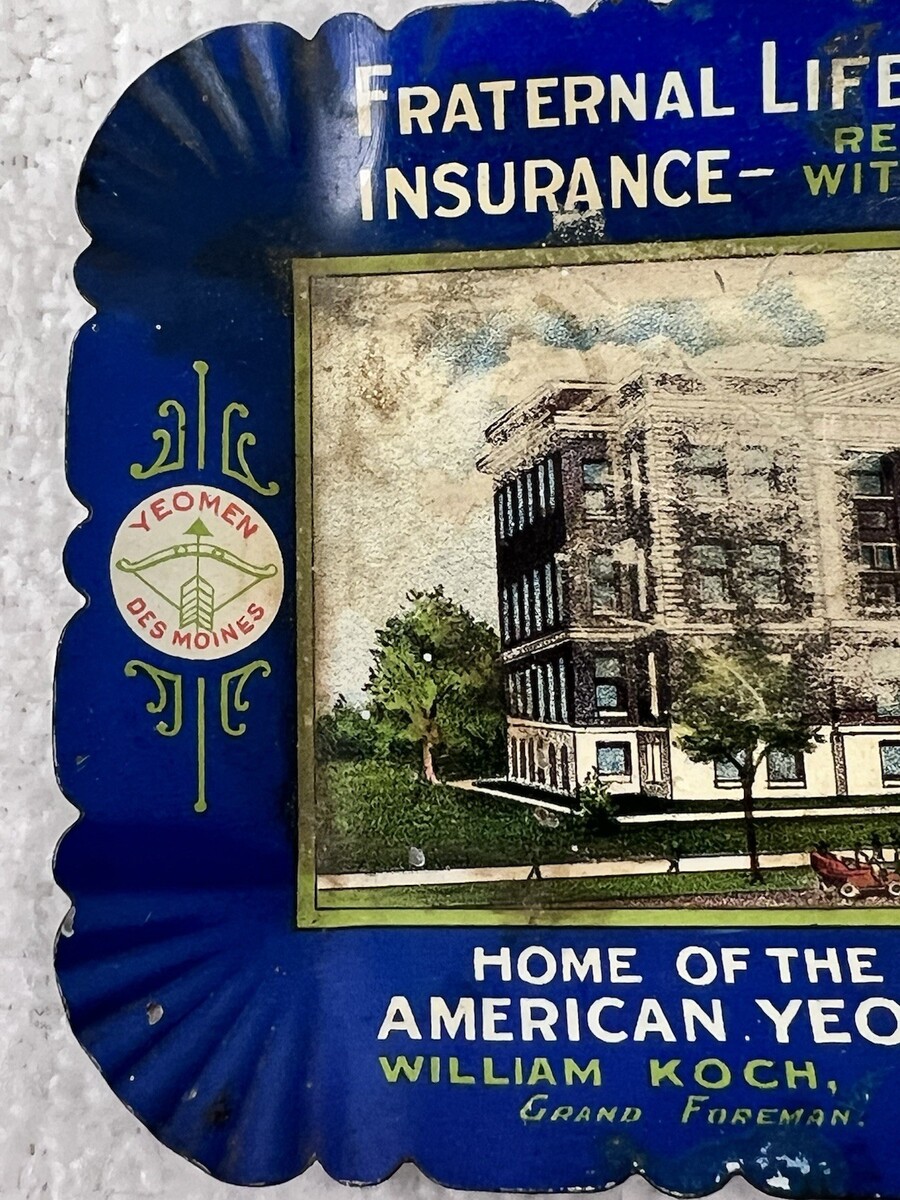 Antique Tin Litho Fraternal Life & Accident Insurance Tin Litho Miniature Tray