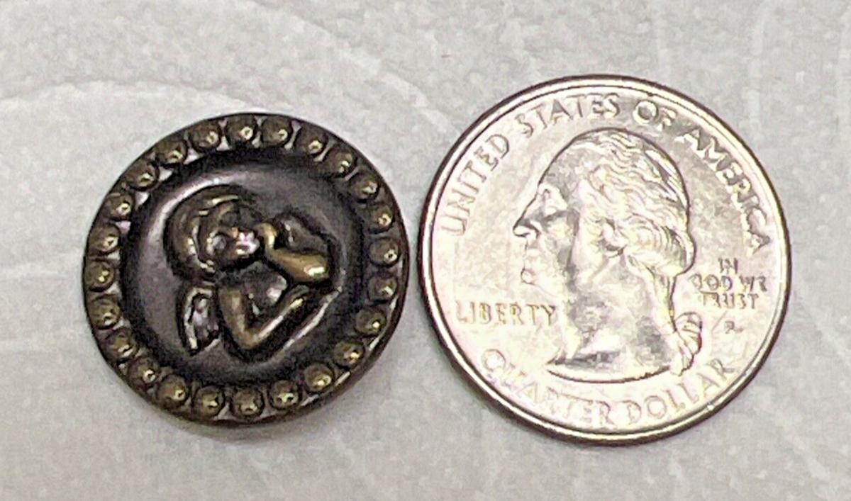 Vintage Raphael Cupid at Wall w Star Studded Rim Button 3/4 Inch Raised Design In good shape