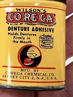 Antique Corega Denture Adhesive Sample Size Tin Bakelite Cap 2 1/4" T
