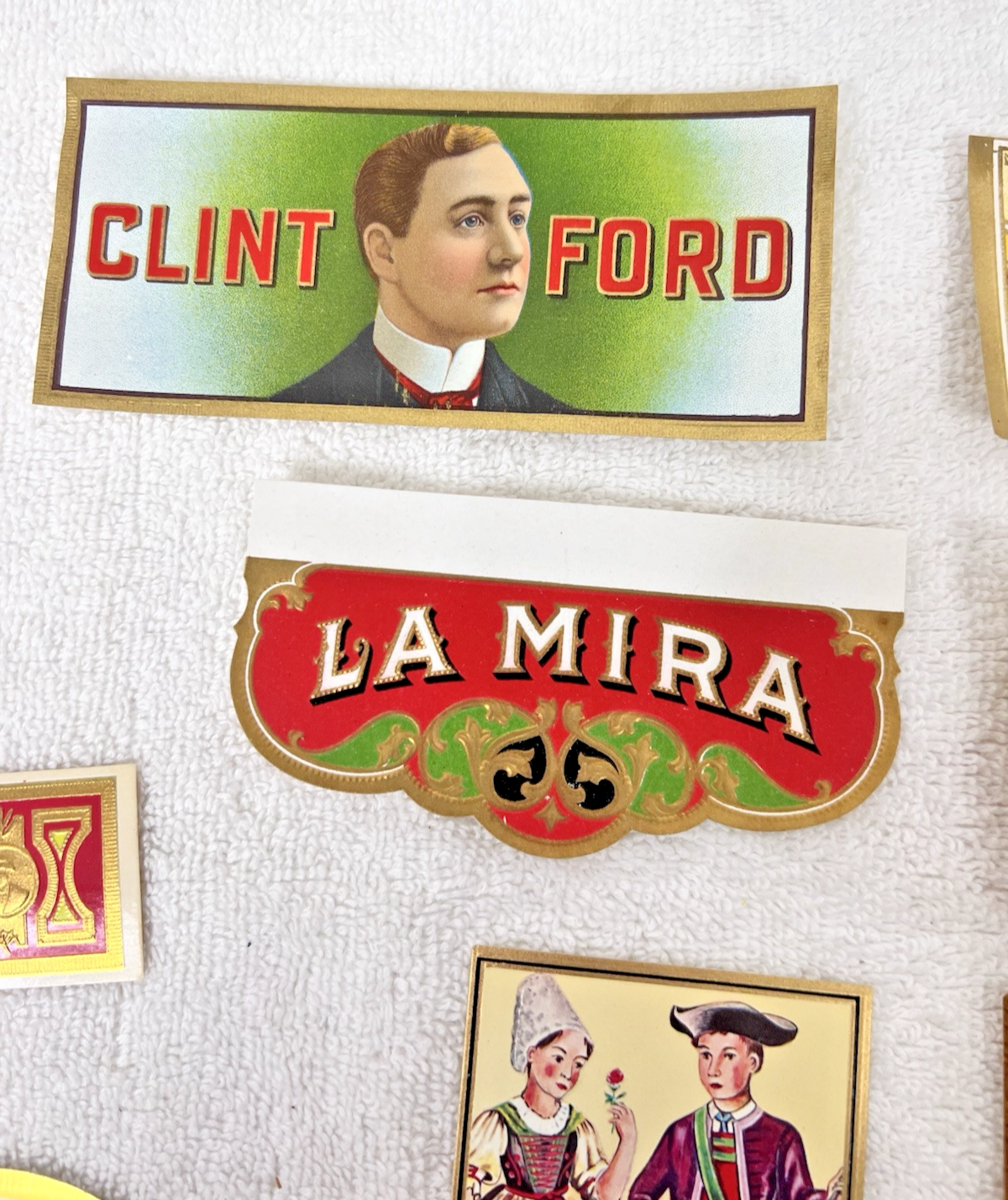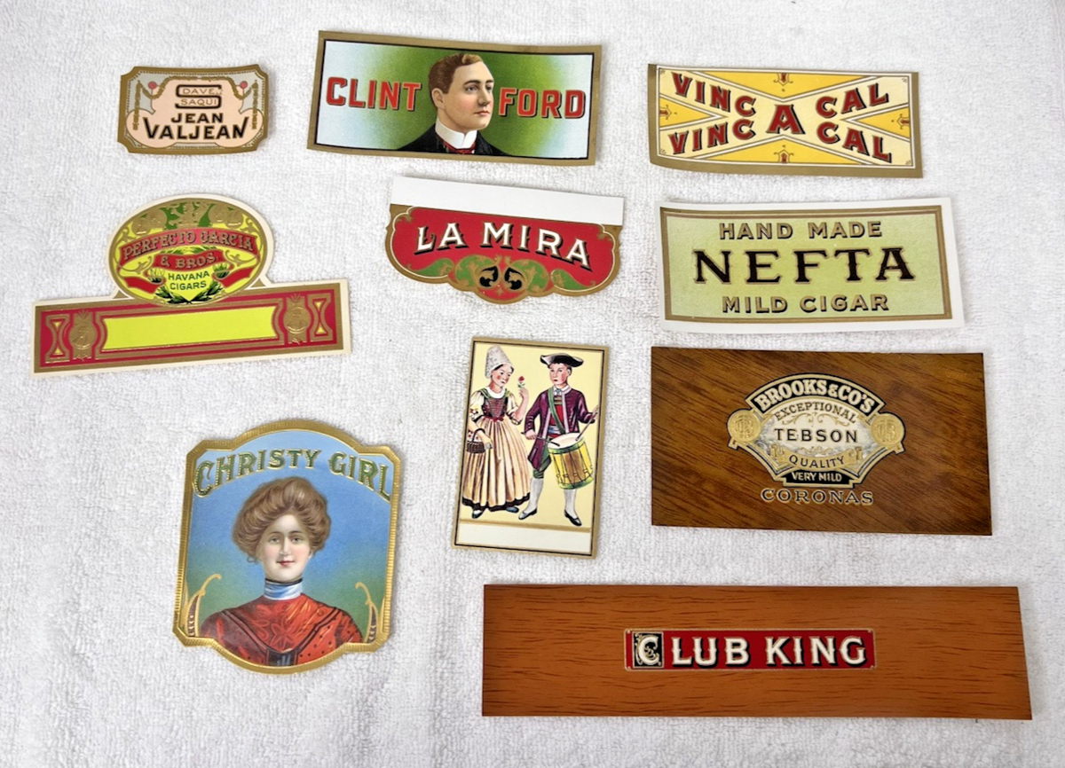 Lot of 10 Antique Cigar Box Tobacco Labels Christy Girl La Mira Club King More