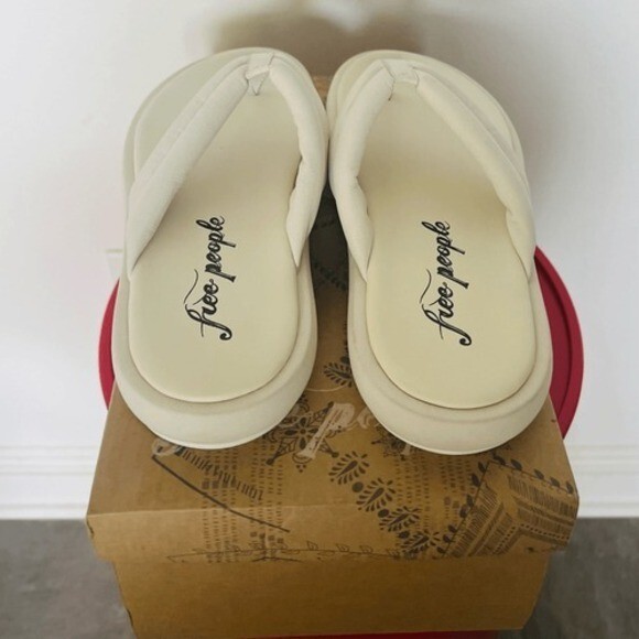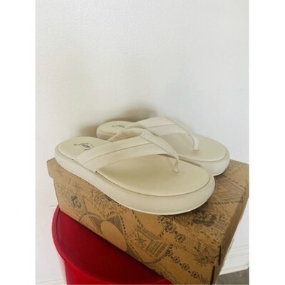 FREE PEOPLE Wonderland Leather Sandal Flip Flop, Size 9.5, White, NWT