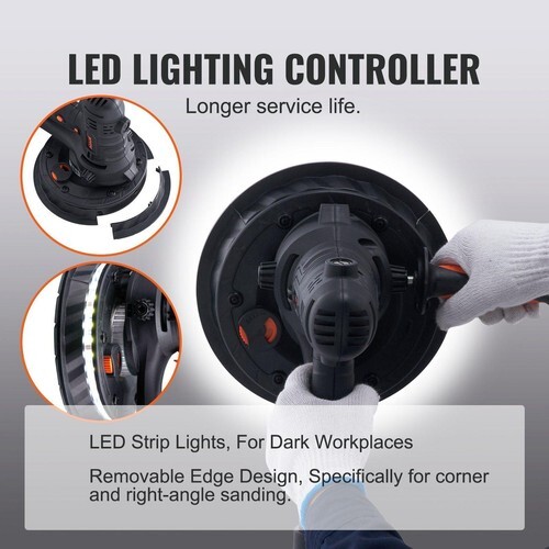 All For Your Convenience: The soft rubber auxiliary handle can be assembled on both sides of the drywall sander, for easier and more labor-saving operation. Enlarged ventilation holes enables quick heat dissipation. Double-layer LED strip provides full coverage lighting to ensure a clear view of the surface being polished.