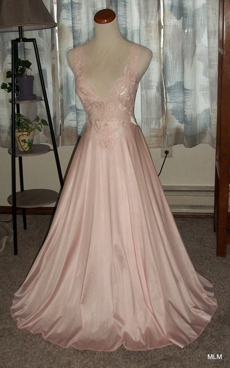 OLGA Pink Gown With Buttons & Robe Peignoir 92770 & 94250 Wide Sweep M/L