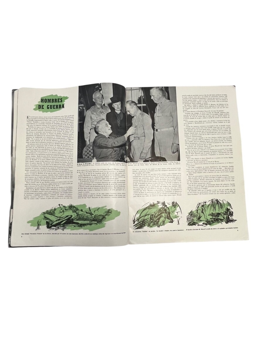 Original Spanish-language issue of ?En Guardia: Para la defensa de las Americas,? a WWII-era publication focused on military defense, aviation, and global conflict. This issue features striking aircraft imagery, wartime photography, and articles highlighting military operations and life during the war. A visually compelling collectible with both historical and display value.