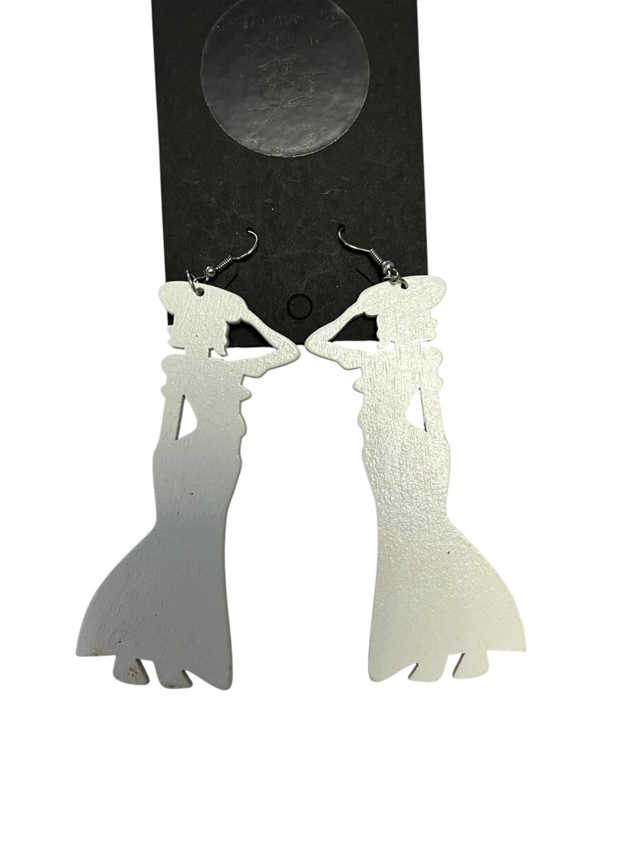 African Woman Dangle Earrings Wood Hand Painted Tribal Afrocentric Jewelry 3.5?