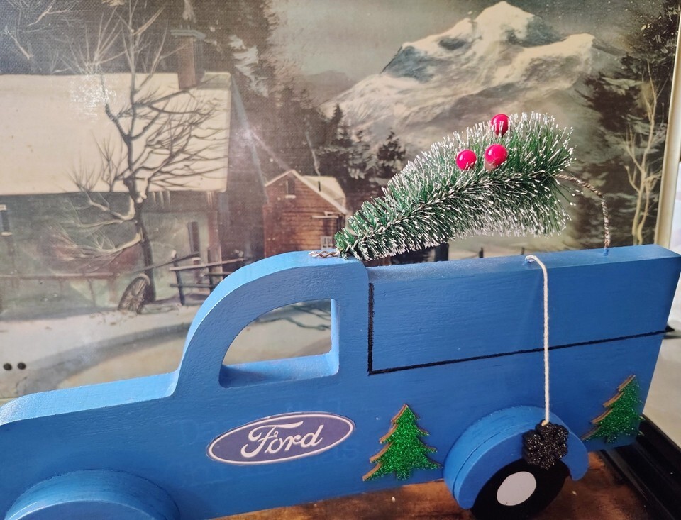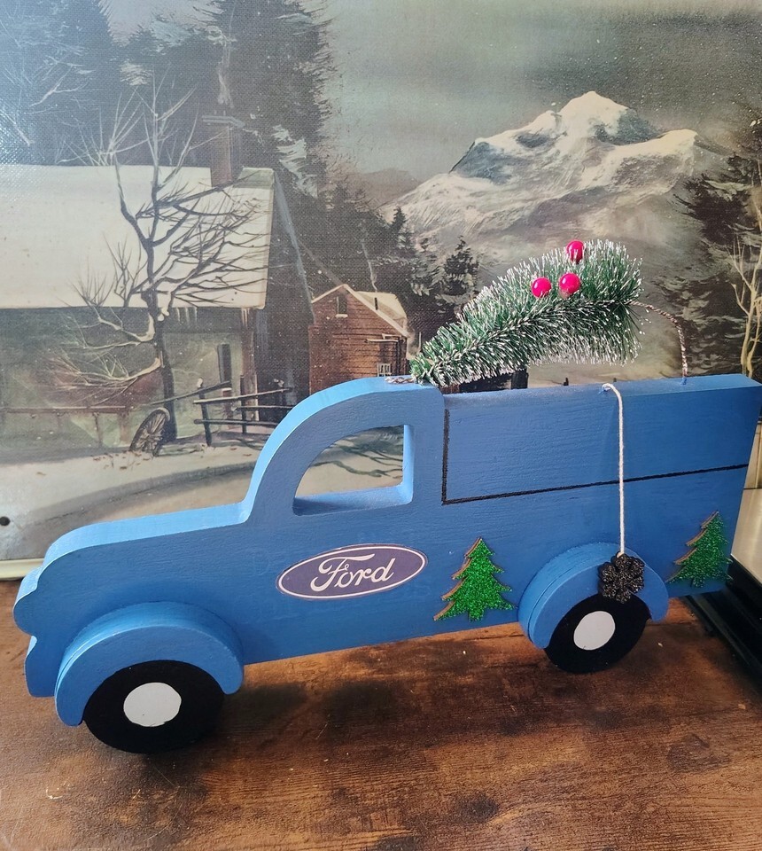 Ford Handcrafted Wooden Blue Truck Christmas and 50 similar items