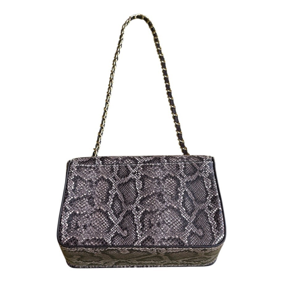 J. McLaughlin flap shoulder bag in a grey/taupe python snakeskin embossed print.