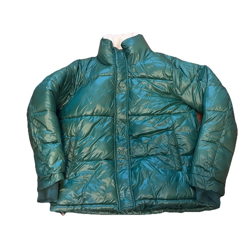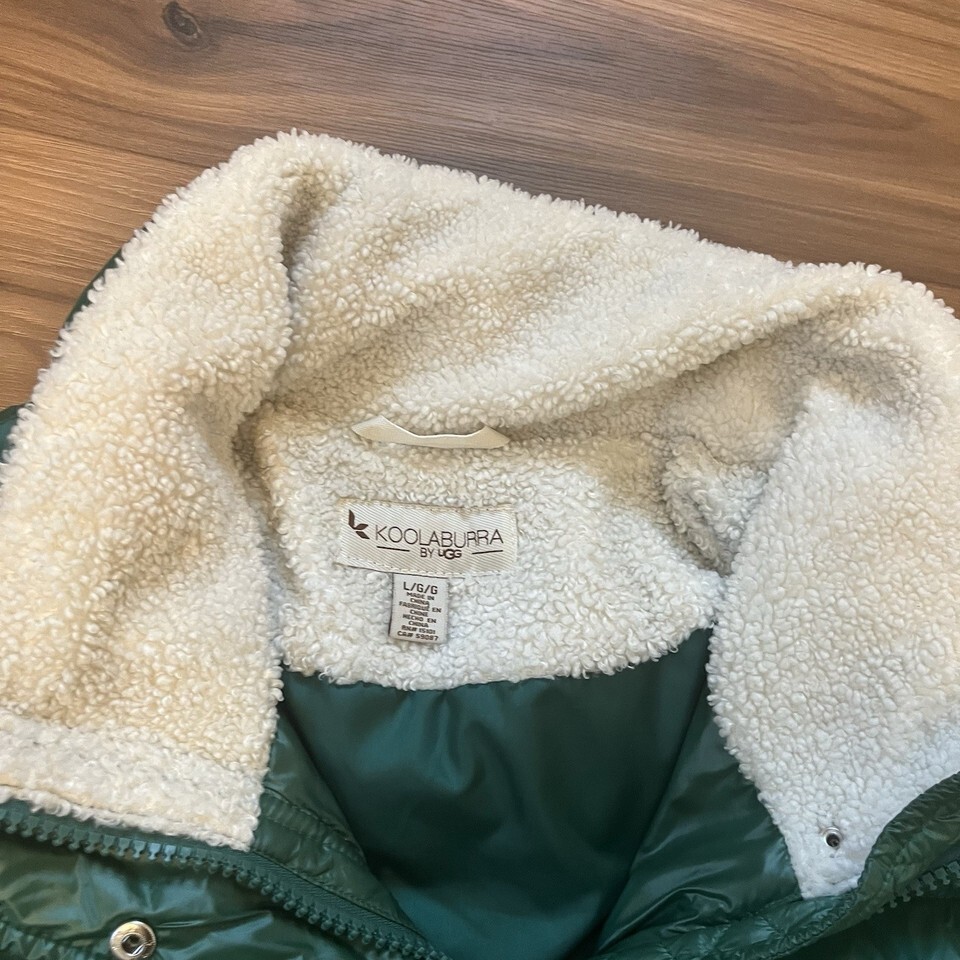 Koolaburra by Ugg Green Puffer Coat Sherpa Trim Metallic Shine Size Large Womens