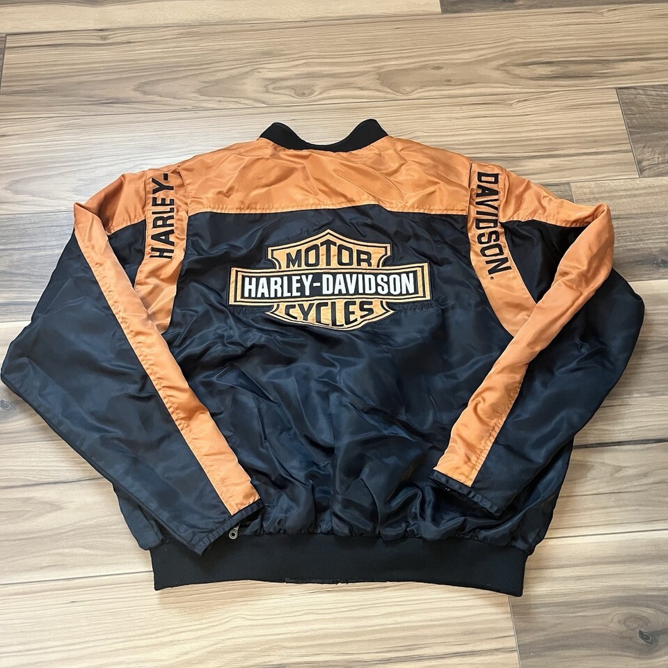 Vintage Harley Davidson Black Orange Motorcycle Jacket Men’s Size 2XL Tall XXL