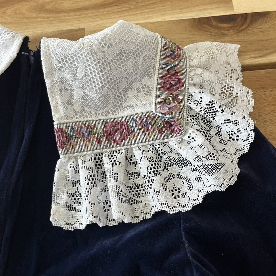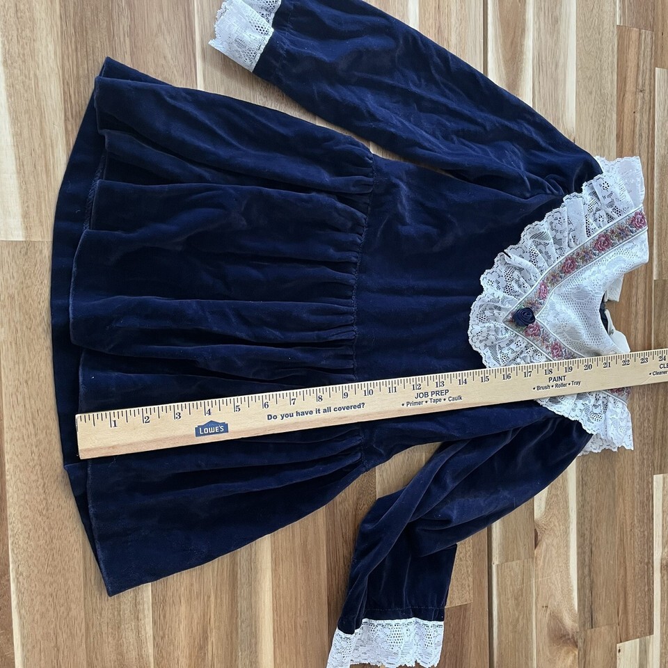 Vintage Pretty As A Picture Blue Velvet Lace Little Girl’s Dress Size 6