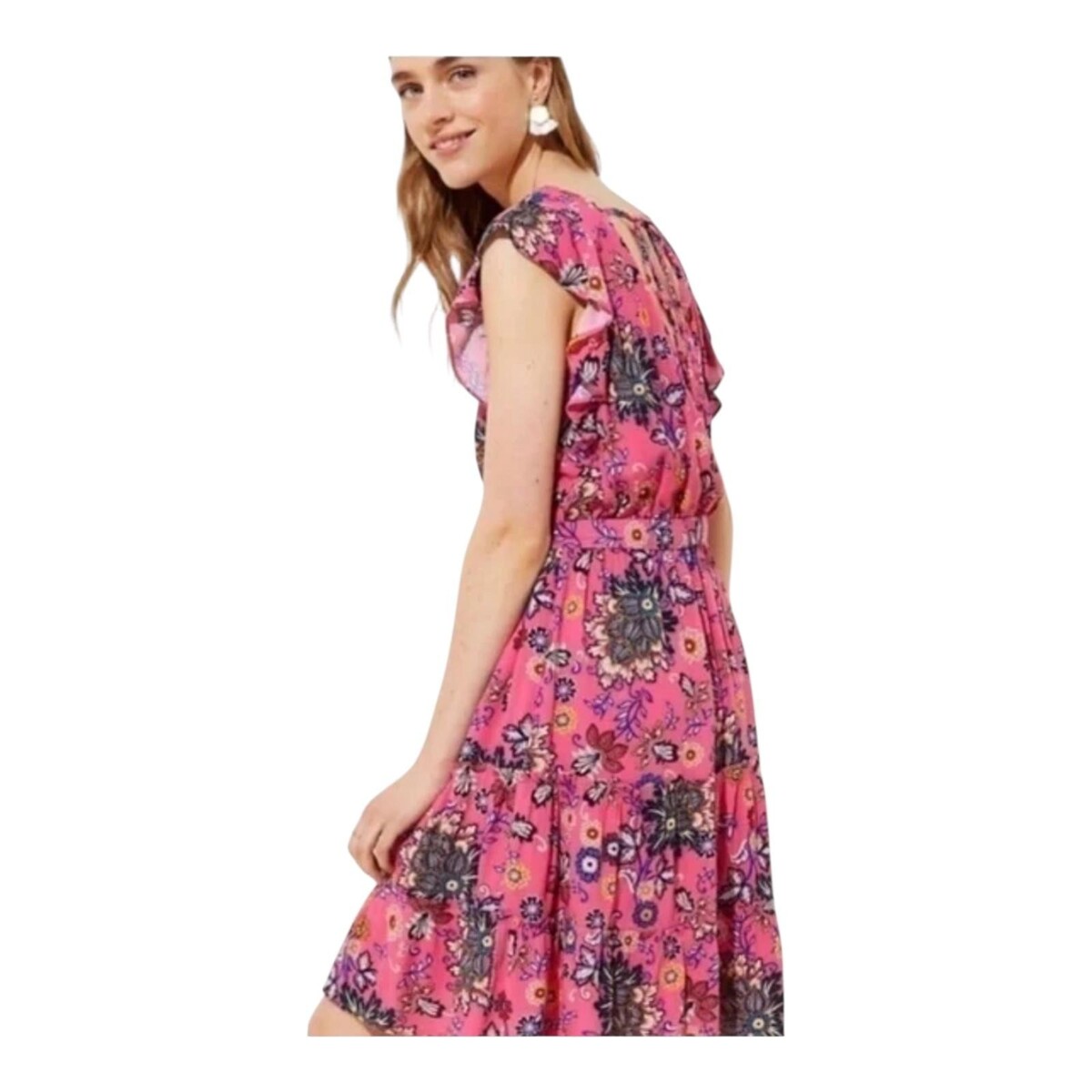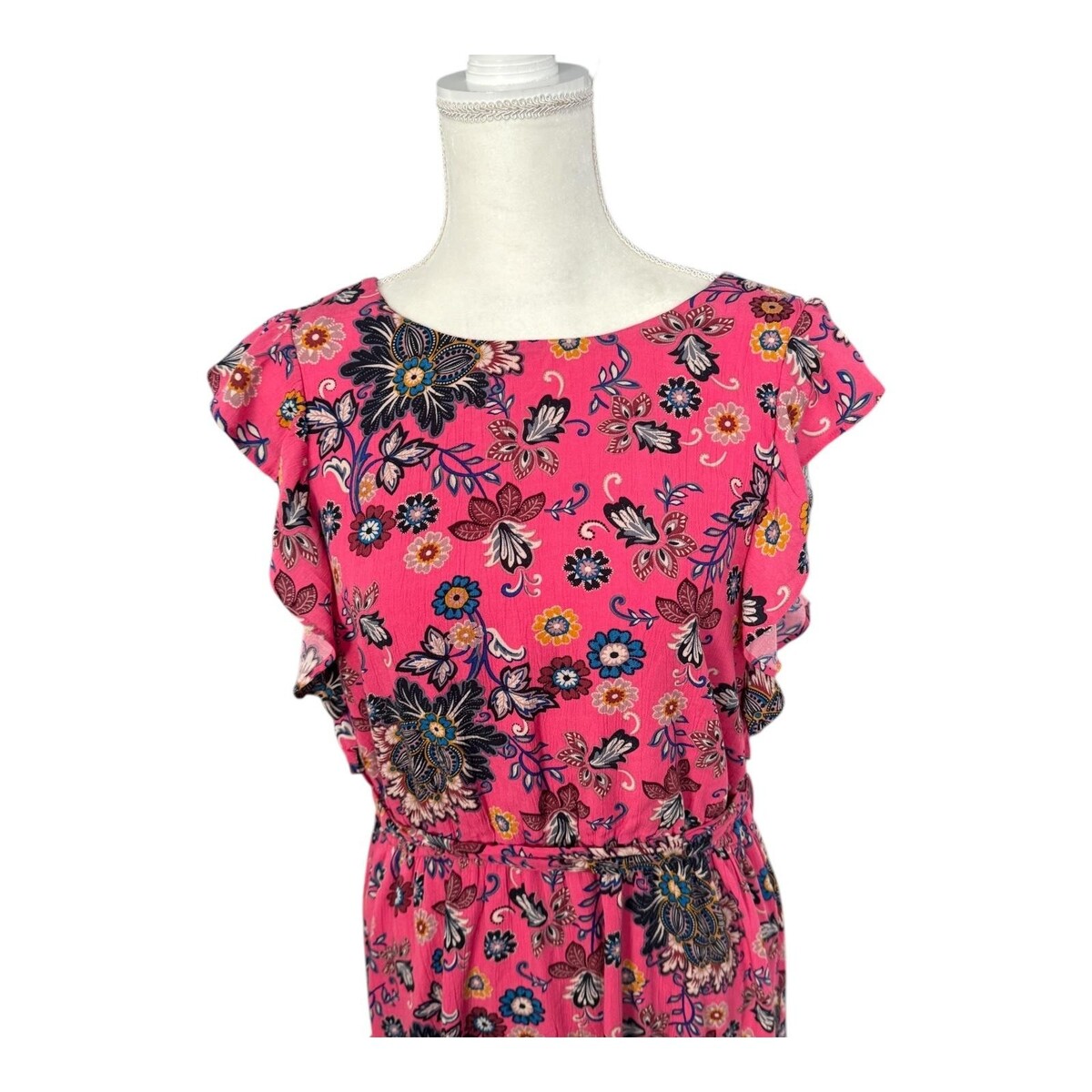 LOFT Dress Womens Large Pink Floral Ruffle and 31 similar items