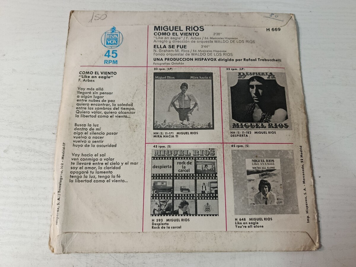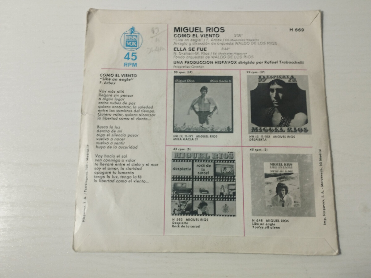 MIGUEL RIOS como el viento ella Se Was 1970 and 50 similar items