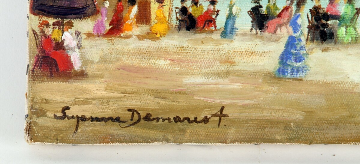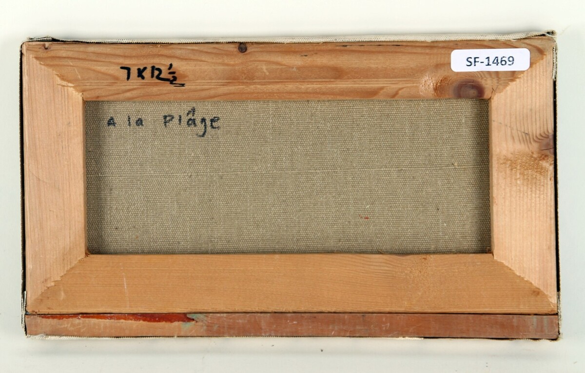 "A La Plage" di Suzanne Demarest, dipinto ad olio su tela, 7x12.5