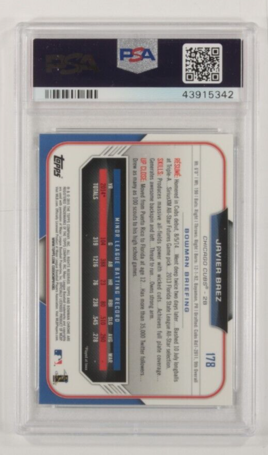 2015 Bowman Chrome Javier Baez PSA 10 Gem Mint Grade #178