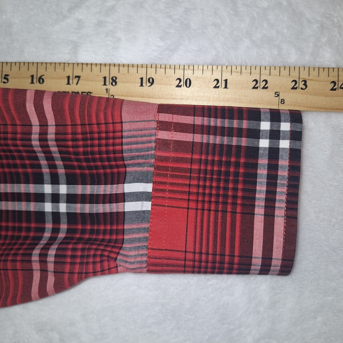 ? Color: Red, black white plaid