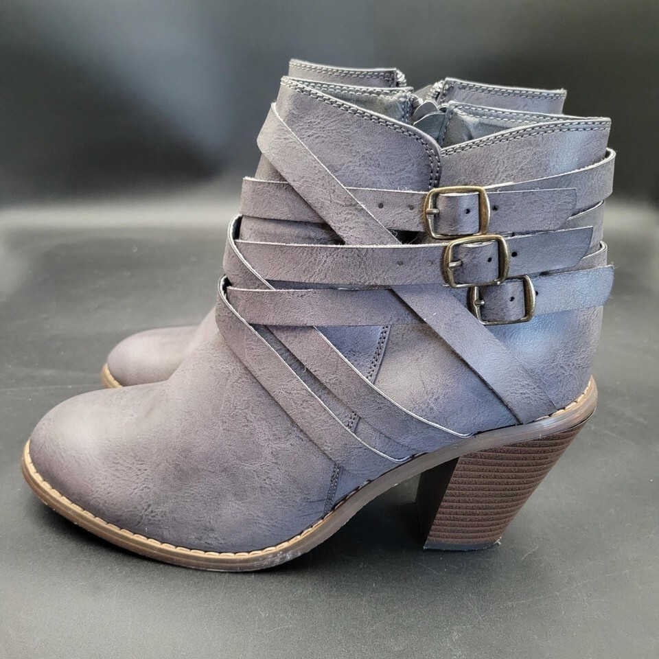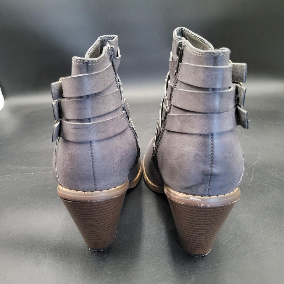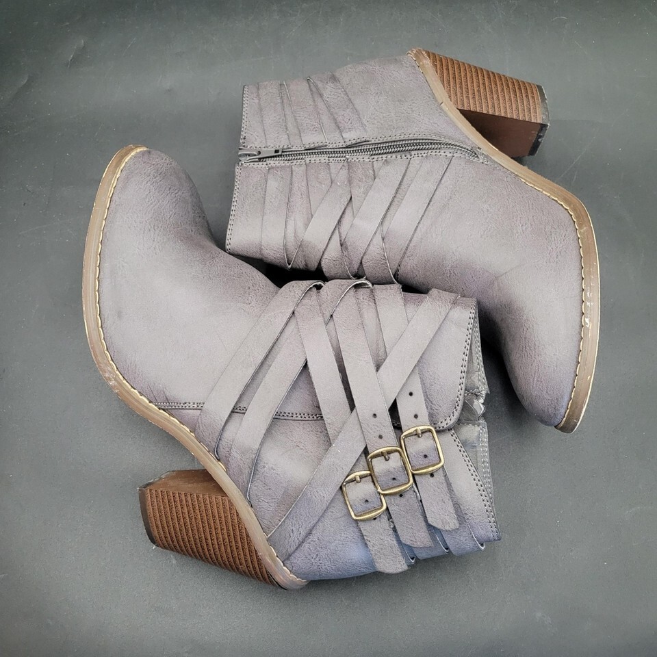 Women's JC 3.5 Heel Strappy Grey Heeled Boots Booties Size 10 EUC Zip Side