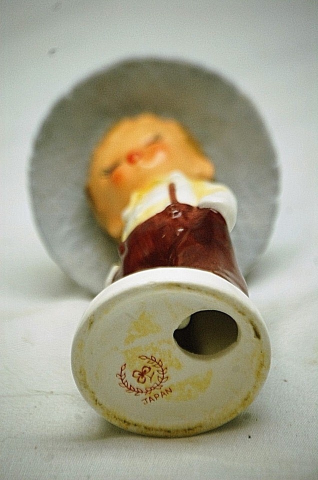Japanese Boy Ceramic Figurine Blue Rice Hat Shadow Box Shelf Japan Vintage 1950s