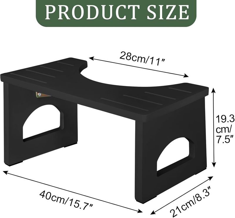 Nice Craft: The collapsible toilet stool board surface is smooth and polished without burrs, the rounded edges and corners to avoid bumps and injuries, safe protection and anti-collision; The curved structure fits the curve of the toilet, and reduces the occupying area, the height of the ground is 19.5 cm/ 7.5 inch.By promoting a more natural posture, the bathroom stool can reduce the need for excessive straining during bowel movements, potentially alleviating discomfort and numbness in the legs