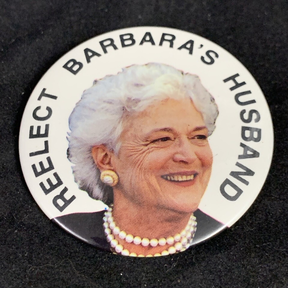Re-elect Barbara Bush’s Husband George Bush Presidential Campaign Button KG
