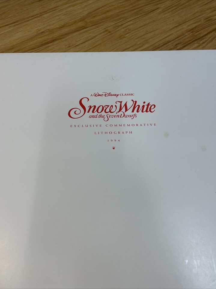 The Disney Store Exclusive Commemorative Lithograph 1994 Snow White KG JD
