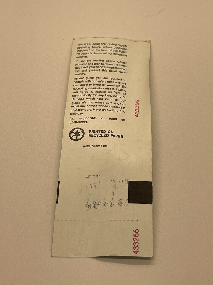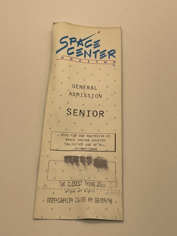 Vintage 1996 Space Center Houston Senior Admission Ticket Travel Souvenir KG JD