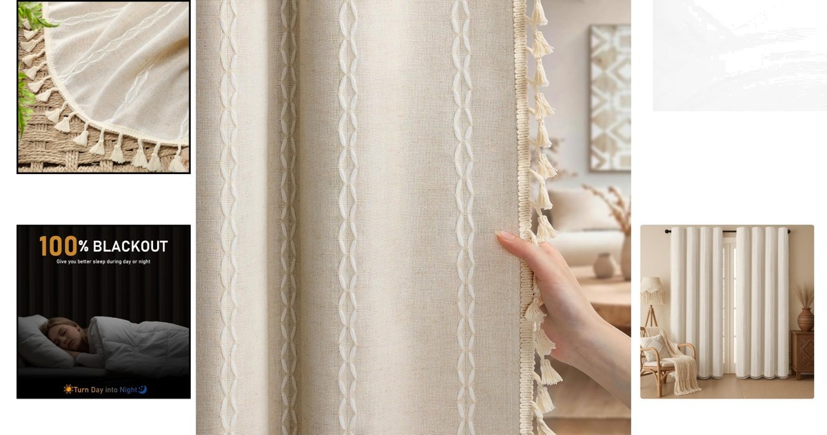 Chic Beige Linen Blackout Curtains - 2 Panel and 50 similar items