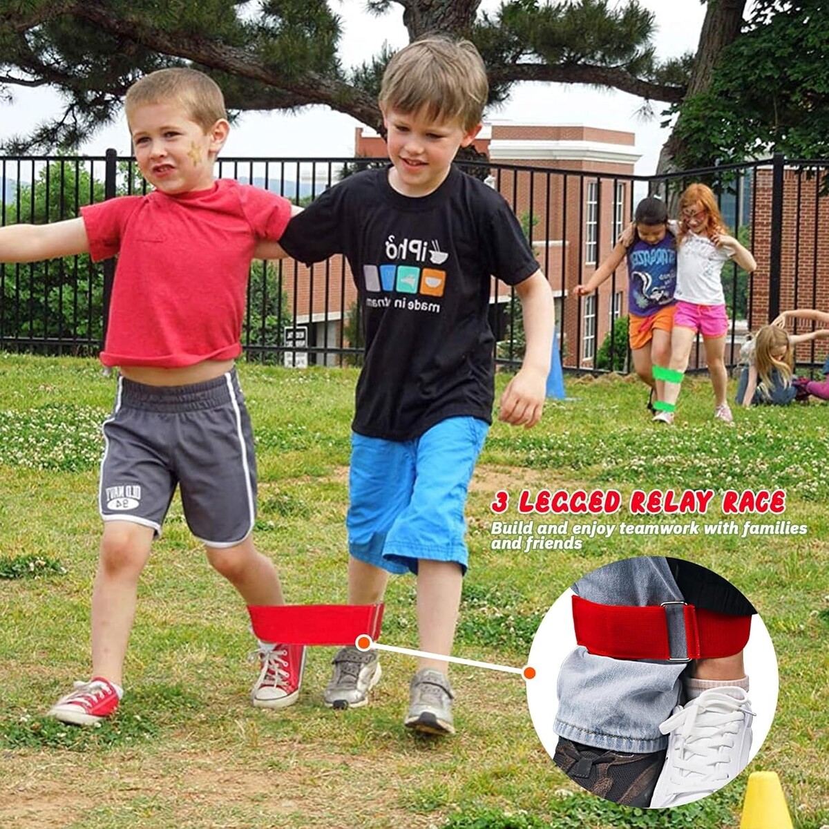Engaging Race Activities: 4 pcs 3 Legged Relay Race with adjustable elastic tie rope to promote teamwork and fun interactions.