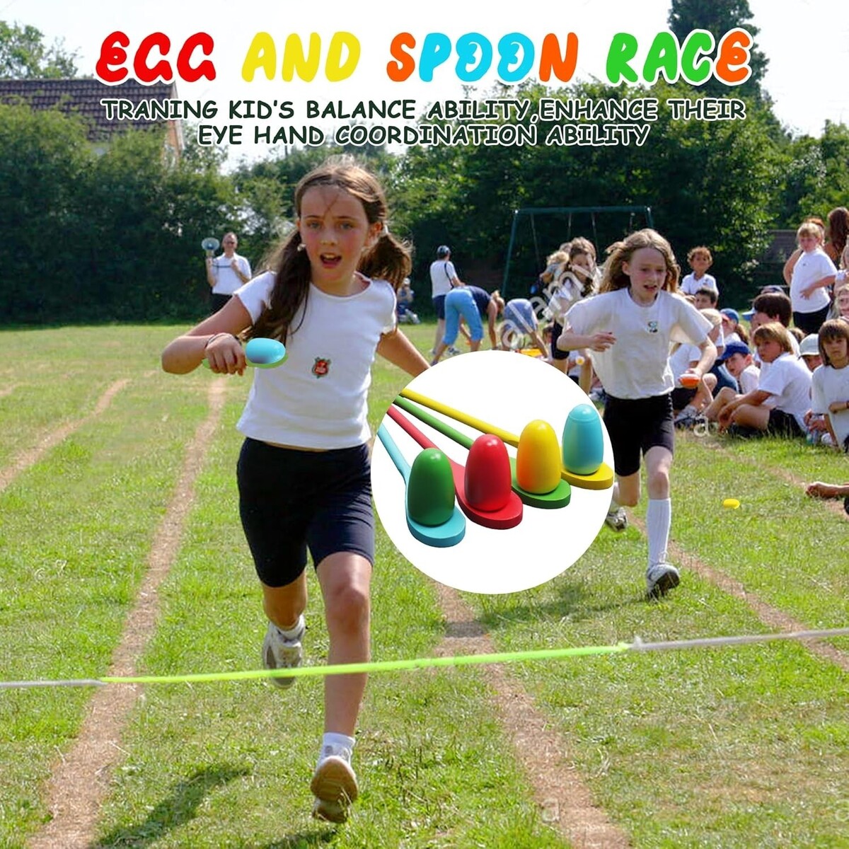 Interactive Fun: Comes with 4 Wooden Egg Spoon Race Game Sets to enhance children?s balance and coordination skills.