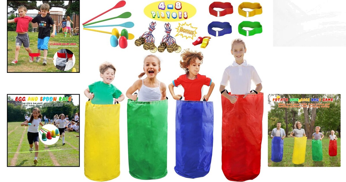 Designed for 4-8 Players: Includes 4 colorful Potato Sack Race Bags (39.3" x 25.9") suitable for both kids and adults.
