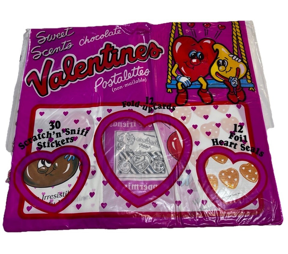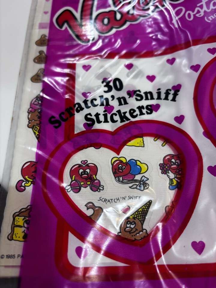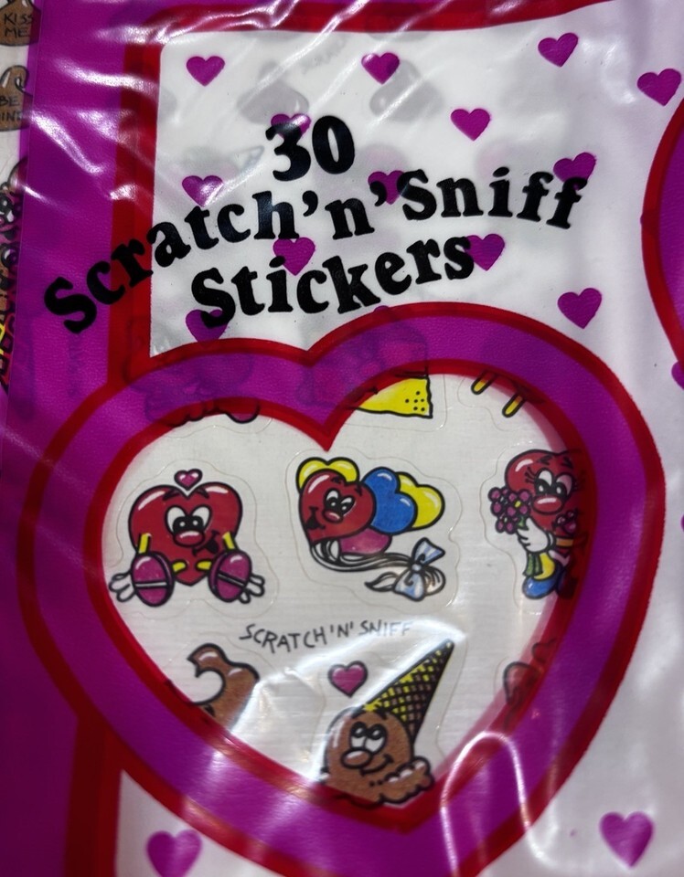 New Vintage 80's Chocolate Sweet Scents Scratch 'n' Sniff Stickers Valentines