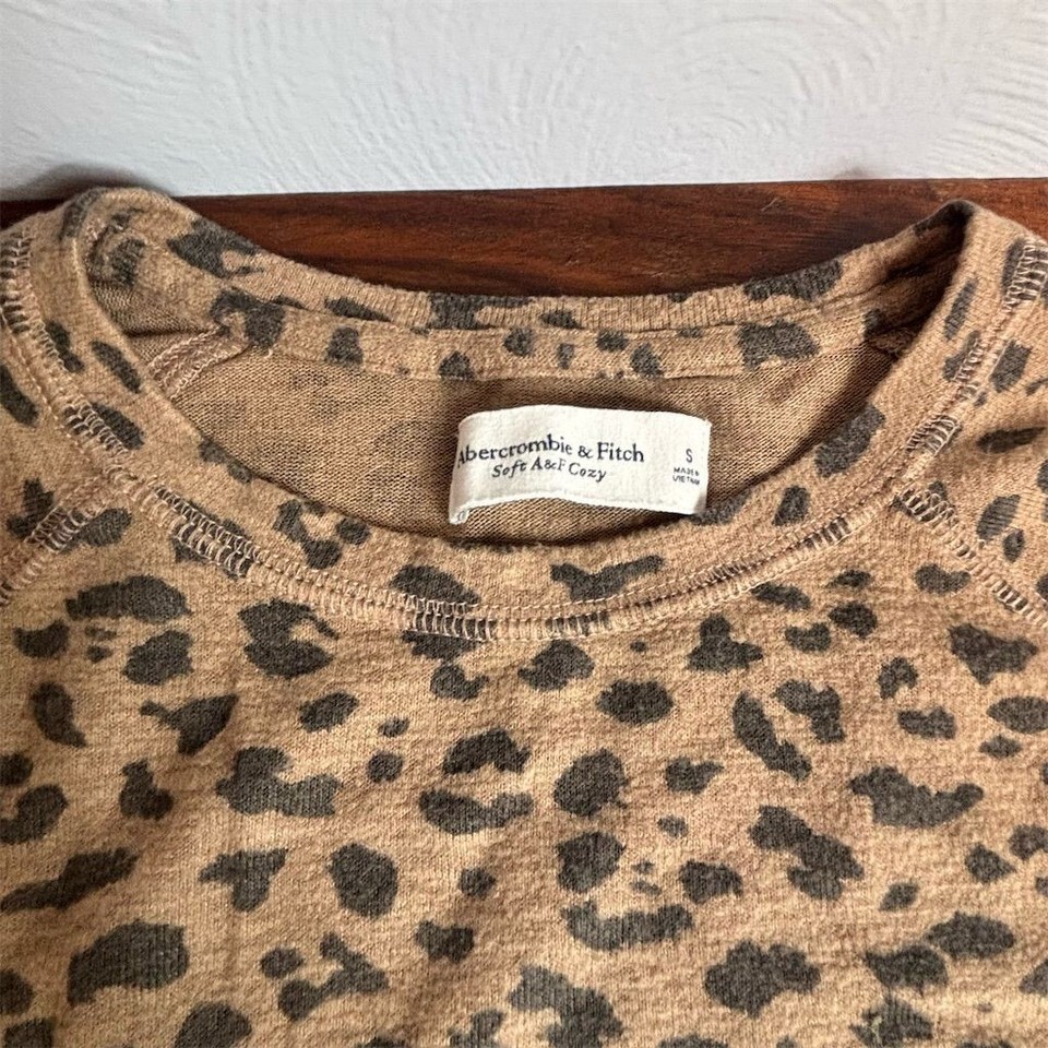 Abercrombie & Fitch Soft A&F Cozy Leopard Print Raglan Long Sleeve Top Small