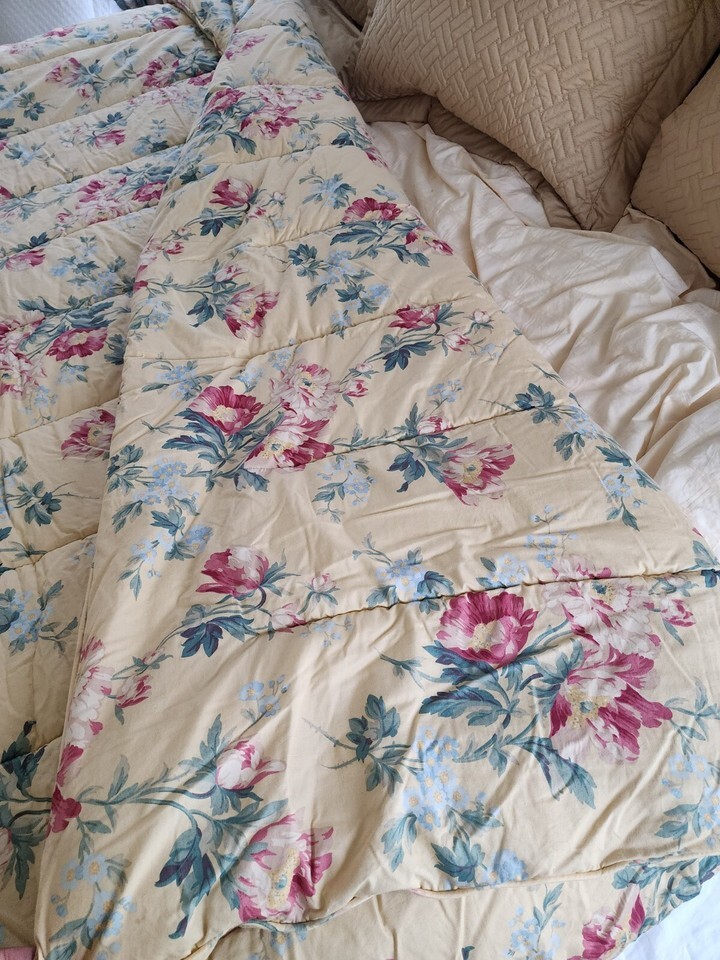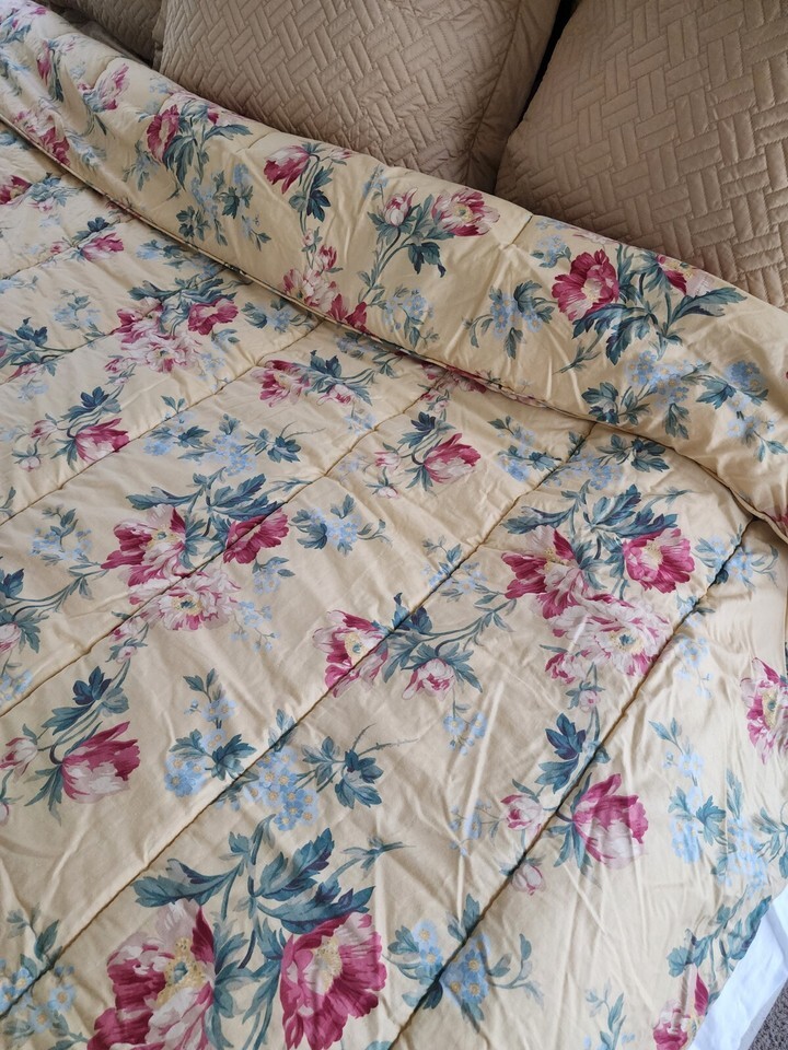 Vintage Ralph Lauren PARSONAGE Yellow Floral Full/Queen Comforter Reversible