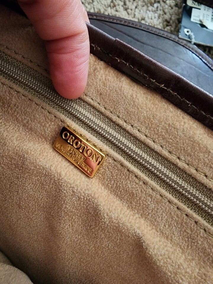 Vintage OROTON leather Brown Woven Crossbody Purse Bag New