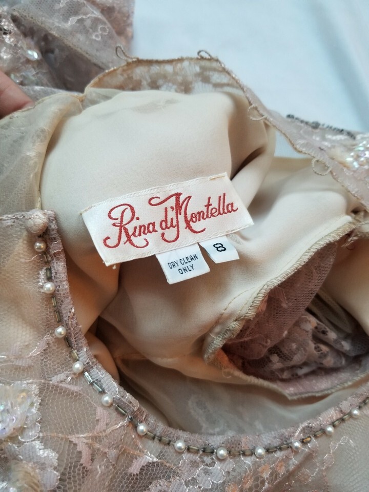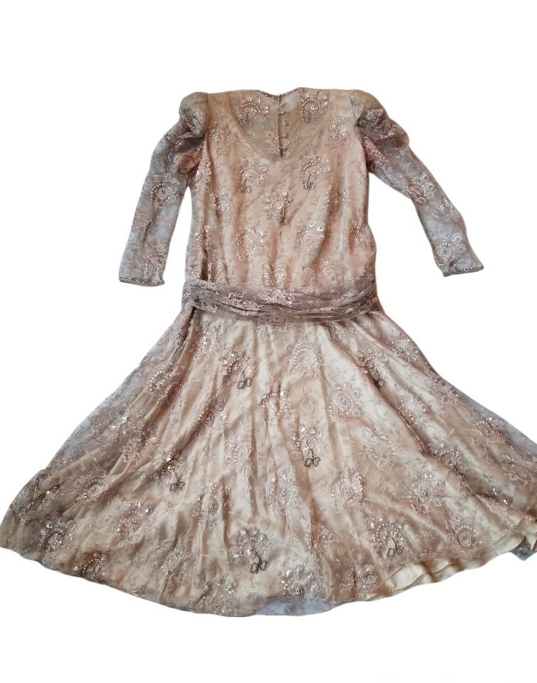 Vintage 80s Rina diMontella edwardian Sequined Beaded Lace Drop Waist Dress 8