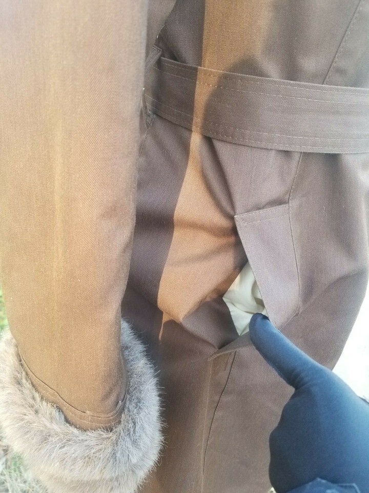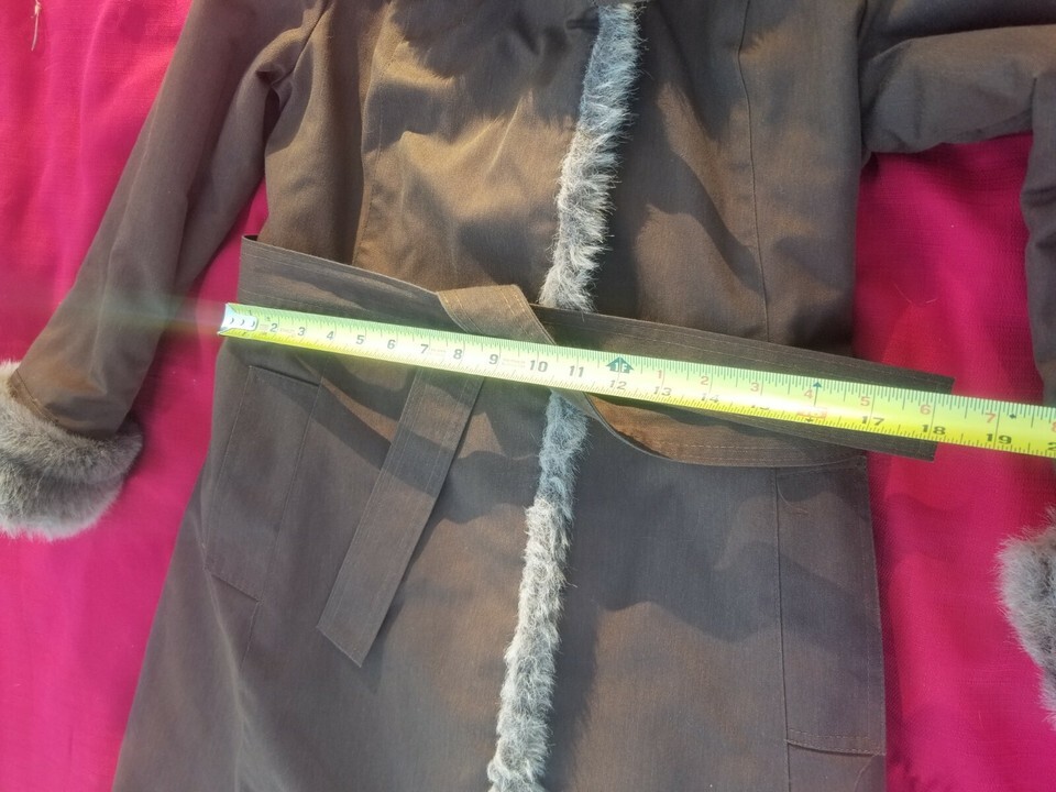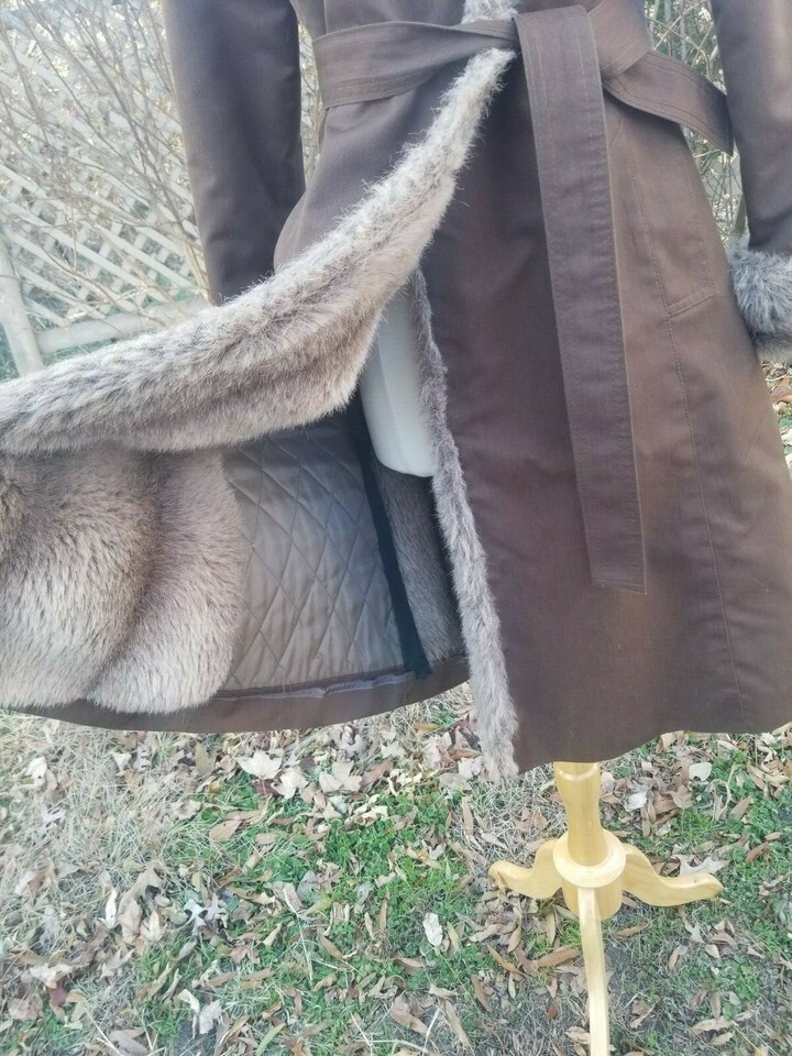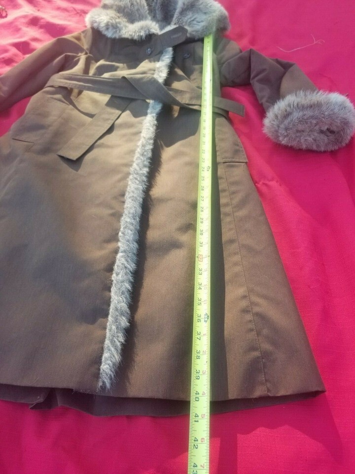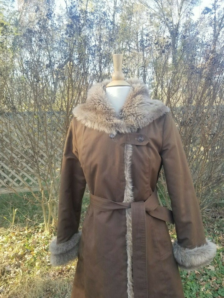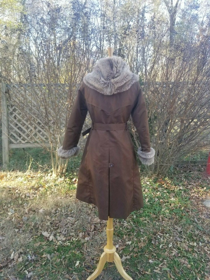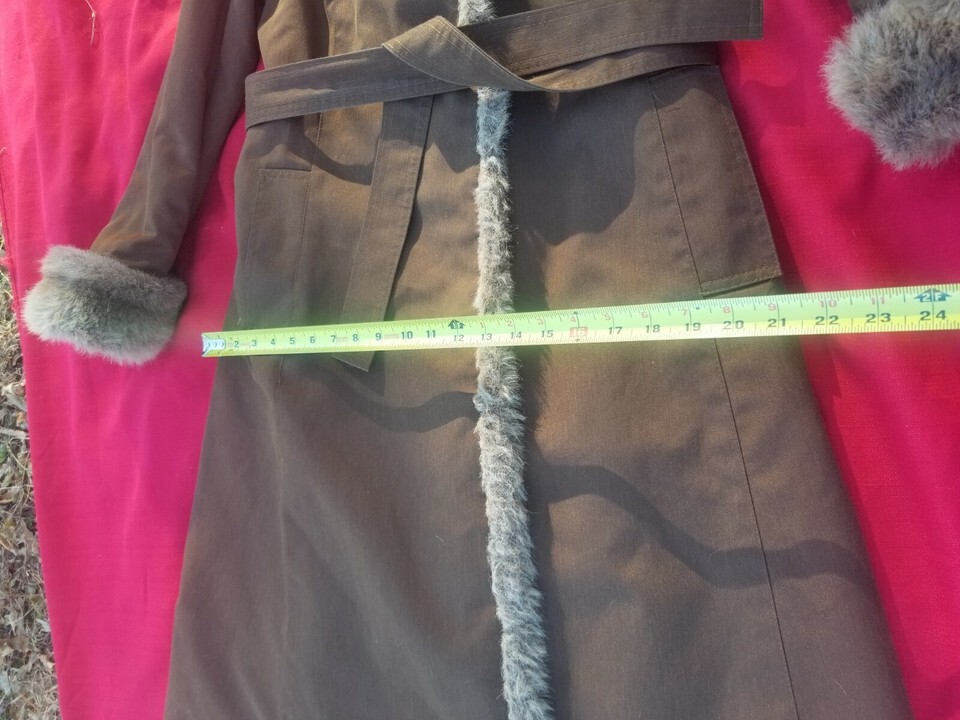 Vibtage 1970s Khaki brown trench robe coat faux fur lining hooded belted fits S