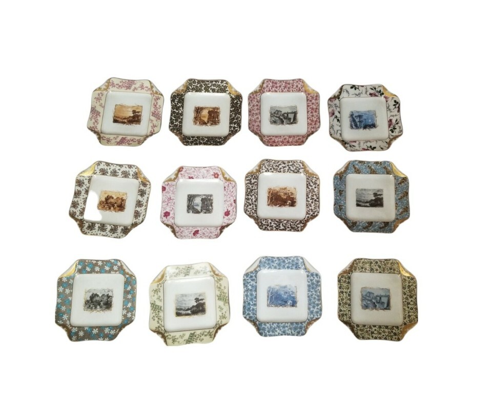 Antique Haviland Limoges Burley & Tyrrell folded napkin Plates set x 12 rare
