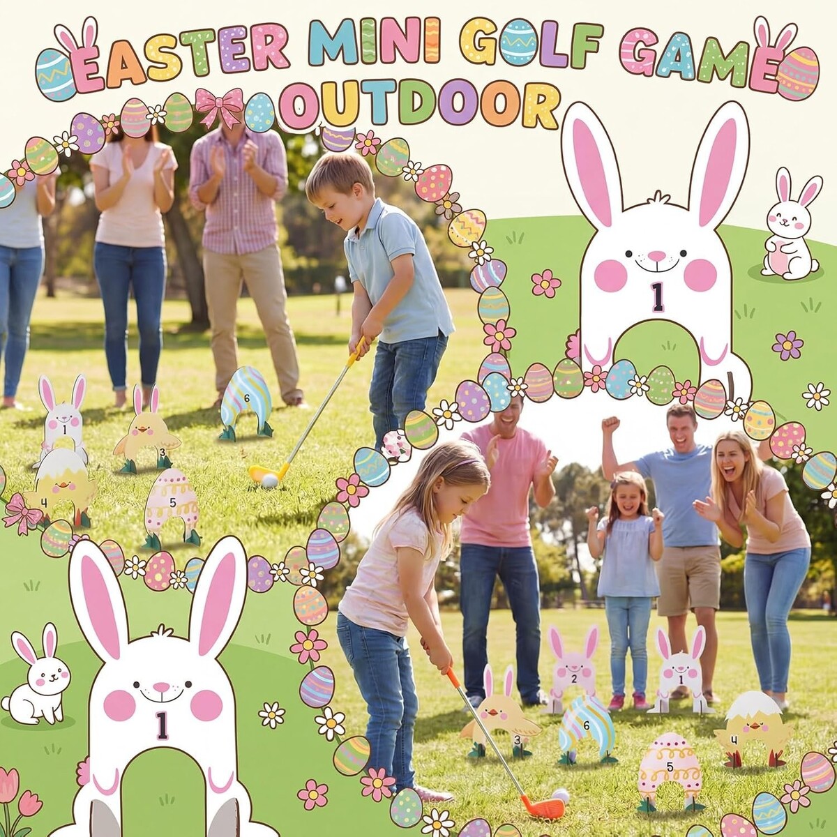 Family-Friendly Easter Mini Golf Game - Sturdy Wooden Holes & Adjustable Putters