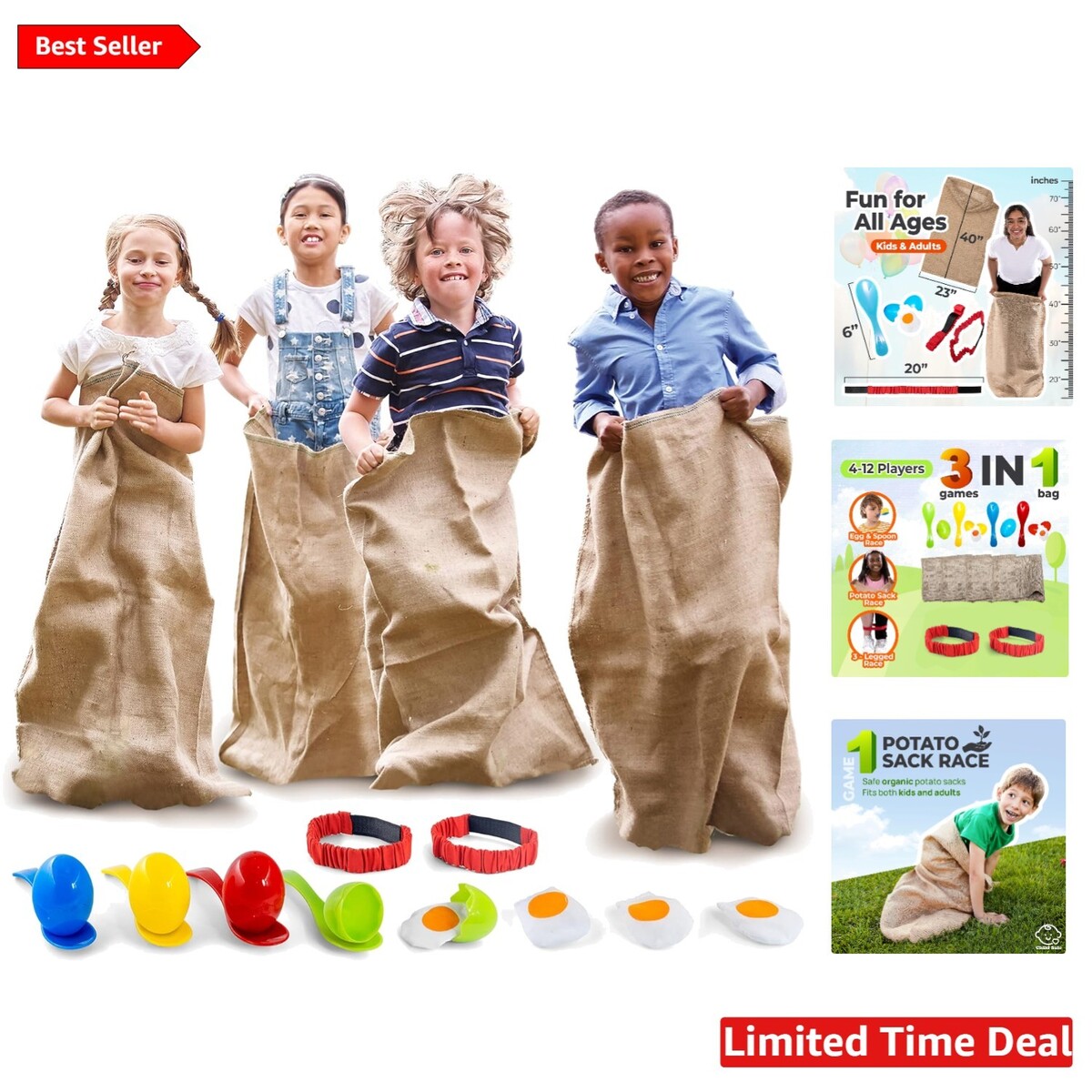 Ultimate Outdoor Activity Bundle - Potato Sack Races, Egg & Spoon, 3-Legged Fun!