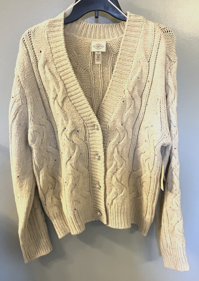 St Johns Bay NWT Oatmeal Color Cardigan with Gems Size XXL