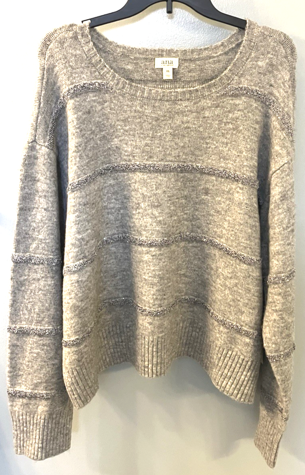 Ana Womens NWT XXL Gray Metallic Thread Sequined Sweater