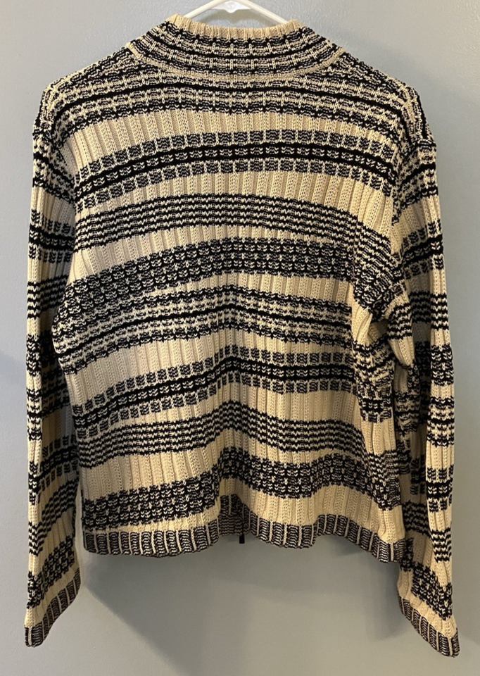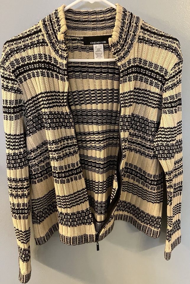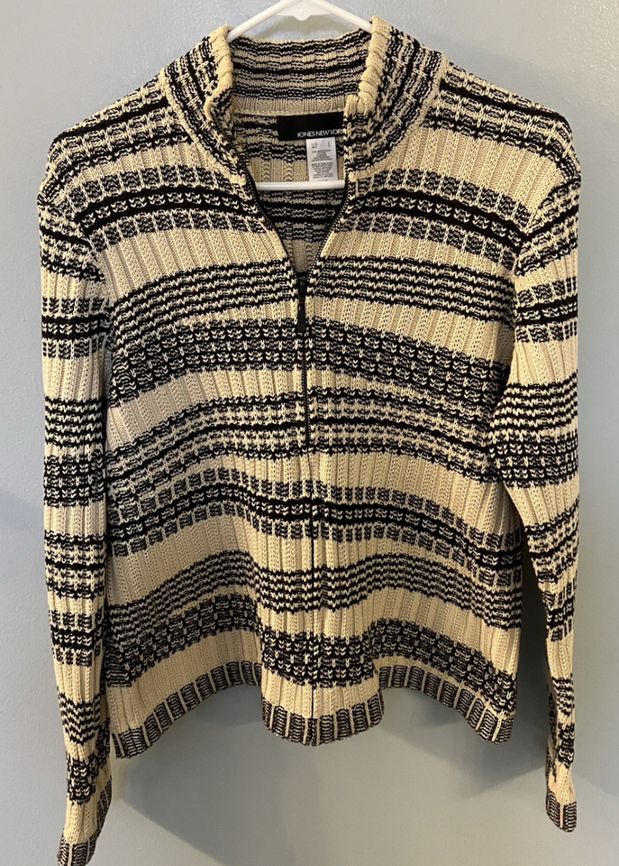 Jones New York Womens Full Zip Sweater Brown/Black Striped Size L