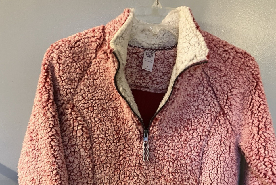 Te Verde Fleece Pullover 1/4 zip Jacket Red/Ivory Size Small NWT